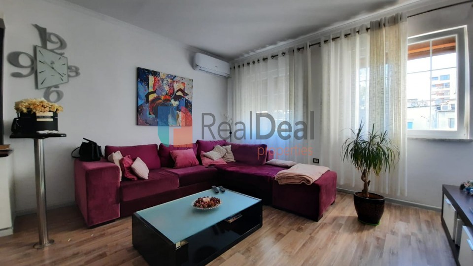REFFL452103 - Sheshi Wilson, shitet apartament duplex me super vendodhje. Apartamenti eshte i organizuar ne forme duplex ndodhet ne katin e 4 dhe te 5 te nje pallati ekzistues me 5 kate dhe organizohet ne katin e 4 me nje sallon ndenje se bashku me ambientin e gatimit me vehte, dy dhoma gjumi dhe nje tualet, ndersa ne katin e 5, dy dhoma gjumi dhe nje tualet, gjithashtu dhe nje verand. Apartamenti shitet totalisht i mobiluar me nje mobilim bashkekohor. Zona ne te cilen ndodhet apartamenti eshte nje nga zonat me te mira te Tiranes per shkak se ofron te gjitha sherbimet e nevojshme per nje jetese sa me komode, ka akses ne linjat kryesore te autobusave urban dhe ne rruget kryesore te Tiranes. Per me teper informacion ose nje vizite ne prone kontaktoni Real Deal Properties +355674032997