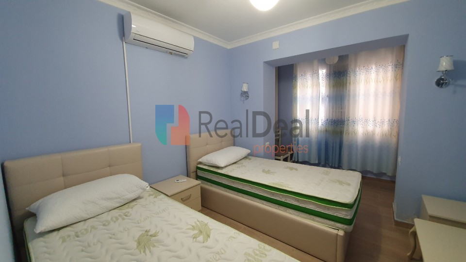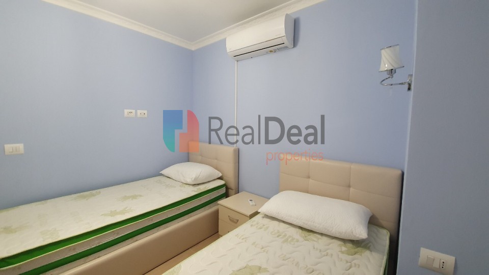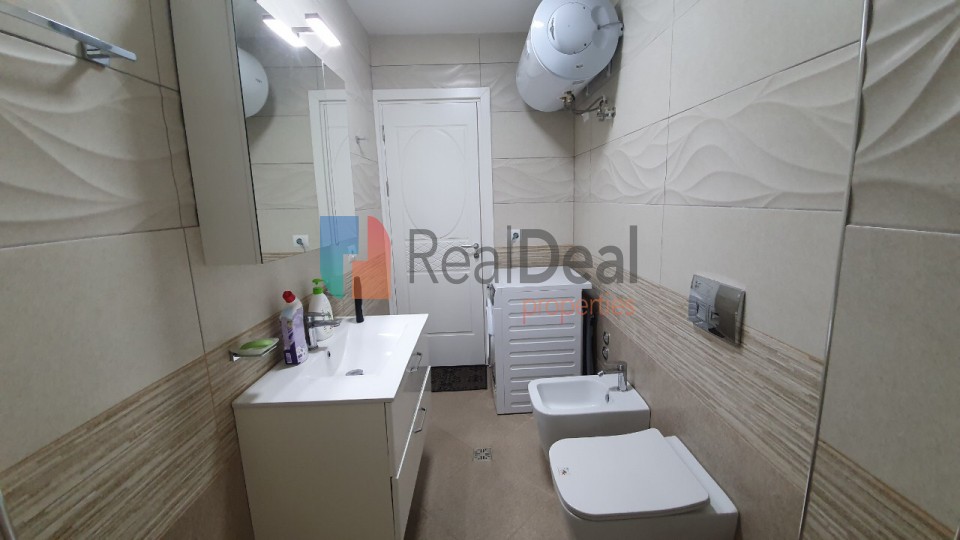 REFKB431438 - Apartament luksoz 2+1 n shitje tek Rruga Siri Kodra. Apartamenti ka siprfaqe t shfrytzueshme 80m2 dhe ka planimetri t pastr lineare. Ambienti organizohet n mnyr t rregullt dhe ka hapsir t bollshme. Organizimi i shtpis bhet i mundur nga nj koridor hyrs i cili orentohet tek salloni i ndenjes, vazhdohet tek t dyja dhomat e gjumit, m pas tek ambienti i kuzhins i cili sht po aq sa pran sallonin dhe i pavarur prej tij. Dhomat e gjumit jan totalisht t mobiluara dhe t investuar me rifinitura t reja bashkohore. Salloni i ndenjes sht gjithashtu i investuar deri n detaje si n mobilim dhe arredim. Kuzhina sht e vecuar dhe e organizuar n dy hapsira dhe ofron aspirim natyral. Gjithashtu edhe tualeti i apartamentit qndron po n t njejtin standart investimi. Esht i organizuar me parabanj ku jan t pozicionuara hidrosanitaret dhe aksesort e nevojshm e m pas kalohet n pjesn m private t tualetit. Esht i veshur me pllaka shum cilsore nga sallonet m t mira t 2019. T gjitha ambientet e apartamentit kan prparsi pasi jan t pajisura me dritare. Dritaret n t gjith hapsirat e shtpis kan veshje me Dopio Xham, dritaret kan hapje t brendshme dhe t pjeshme dhe t jashtme gjithashtu jan t veshura edhe me grila dhe rrejt. Apartamenti sht i nvestuar i gjithi me pllak Minili, e cila sht risi e vitit 2019, n tregun e ndrtimit. Kjo pllak jep ndjesin e parketit por sht m konkuruese n cilsi pasi sht m rezistente n pjesn e qndrueshmris dhe lagshtirs. T gjitha dhomat e apartamentit kan kondicioner. Aparta