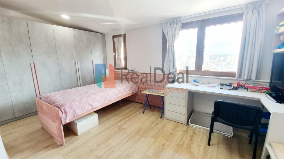 REFRG161580 - Prane Shkolles "Petro Nini Luarasi", shitet super apartament 3+1+2, teresisht i mobiluar. Apartamenti ndodhet ne nje nder zonat me te mira dhe te kerkuara te Tiranes, ne nje pallat 9 katesh, te mireadministruar. Ai strukturohet ne nje sallon ndenje teper te madh, kuzhine gatimi me vehte, tre dhoma gjumi, dy tualete dhe tre ballkone, ambiente te cilat lidhen nepermjet dy koridoreve. Apartamenti eshte i sapo investuar, me mjafte finese dhe cilesi dhe ka nje orientim te mrekullueshem nga tre drejtime Lindje-Veri-Perendim. I gjithe invenstimi eshte bere me arkitekt dhe tejkalon shifren e 40 mije euro-ve. Qe ne shikimin e pare dallohen lehte pjese te ketij investimi, duke filluar tek parketi, sistemi i ngrohjes dhe ftohjes me kondicioner me inverter,tualetet e pajisura me hidrosanitare te markave me te mira italiane, dhe elektroshtepiake pothuajse te paperdorura dhe te kushtueshme. Gjithcka qe ju duhet e gjeni ne kete apartament, vendodhja, cmimi, cilesia dhe mbi te gjitha komoditeti maksimal. Per me teper informacion dhe vizite ne prone na komunikoni ne numrin +355 67 403 2997 !!