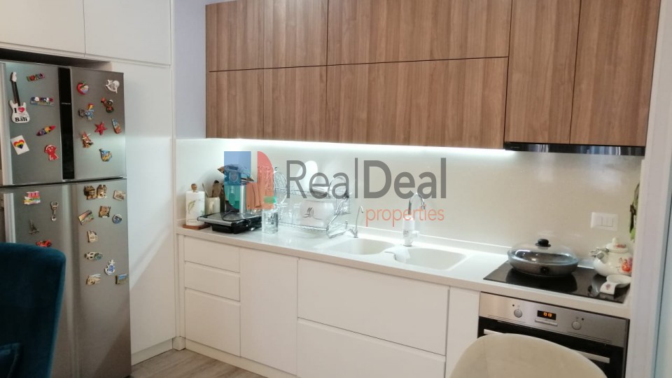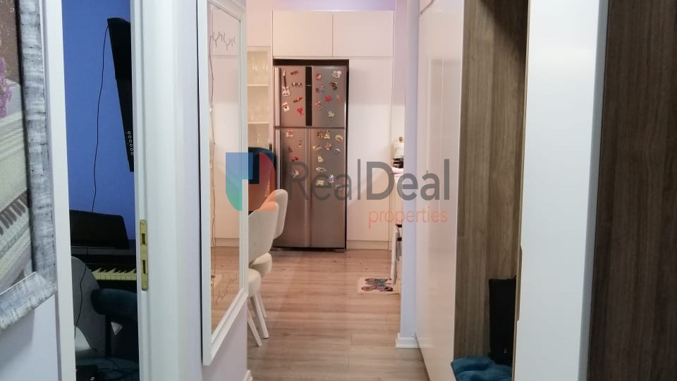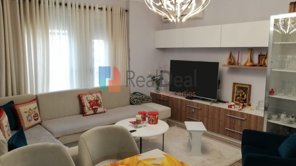 REFJT351427 - Ne Don Bosko prane Viva Market shitet super apartament 2+1 . Siperfaqja prej 84 m2 organizohet ne: sallon ndenje te mobiluar ne menyre bashkohore, pjesa e gatimit qe eshte e pajisur me te gjitha pajisjet elektroshtepiake e nevojshme, dy dhoma gjumi te mobiluara, tualeti i bollshem me dritare dhe nje ballkon. Orientimi i apartamentit eshte perendim. Apartamenti eshte i investuar shume, termoizolim, izolim akustik, kondicioner, parket, vetrata dopio xham. Apartamenti ndodhet ne katin e dyte te nja pallati 7-katesh te ndertuar ne vitin 2017 me ashensor qe shkon deri ne katin -1. Apartamenti shitet i mobiluar vetem disa sende personale do merren, gjithashtu ka dhe nje Garazh por me nje cmim ekstra. Zona ofron te gjitha kushtet e nevojshme per jetesen e perditshme, si markete, dyqane, bare etj. Per me teper informacion telefononi ne numrin +355 67 403 2997 !