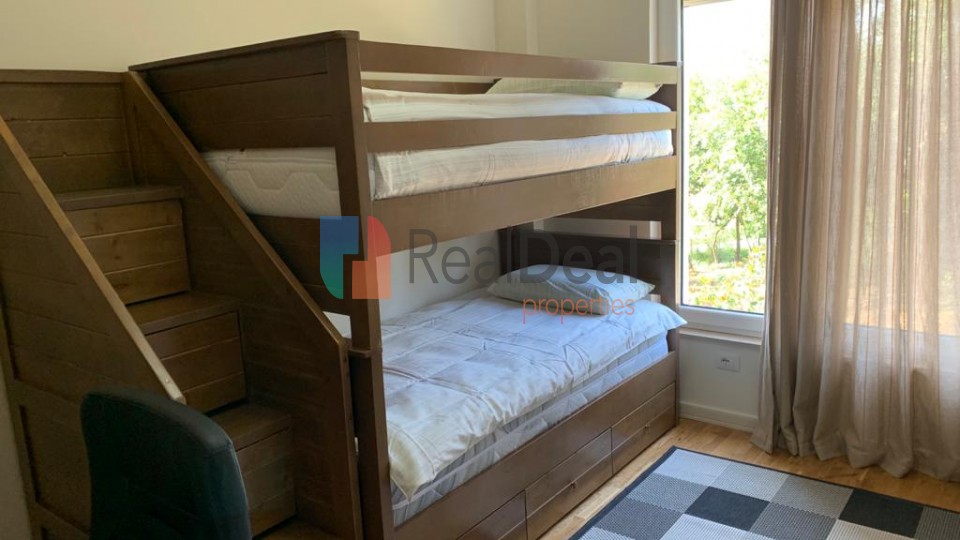 REFSK052514 - Tek Kompleksi Rezidencial Secret Garden, jepet me qira apartament 2+1+2, i super investuar. Apartamenti eshte i organizuar ne sallonin e ndenjes se bashku me kendin e gatimit me dalje ne ballkon, dy dhoma gjumi njera prej te cilave me tuale dhe dalje ne ballkon dhe nje tualet i perbashket. Apartamenti ndodhet ne nje nga komplekset me te bukura te vilave ne Tirane, cilesia e ndertimit eshte superiore, i gjithe kompleksi rrethohet nga pyll natyror, aty prane gjendet TEG per sherbimet e nevojshme dhe dhe disa prej shkollave me te mira ne Tirane. Kompleksi ka: -Recepsion 24 ore- Monitorim me kamera t gjithe rrethimit, Parqe te gjelberuar ne sherbim te perbashket. Punimet ne apartament jan shume cilesore, pasi jane bere nga vete pronari dhe do detaj eshte zbatuar me perkushtim dhe profesionalizem. Duke filluar nga sistemi elektrik, sistemi hidraulik (incaso), parketi i cili eshte prej druri i cilesise se larte, si dhe pajisjet elektroshtepiake jane te markave me te mira ne treg. Orientimi i apartamentit eshte nga Lindja dhe Jug-Perendimi duke ofruar nje pamje te mrekullueshme. Ne cmim eshte i perfshire dhe nje post parkimi. Per me shume informacione ose nj vizite n prone na kontaktoni n +355 67 403 2997 !!