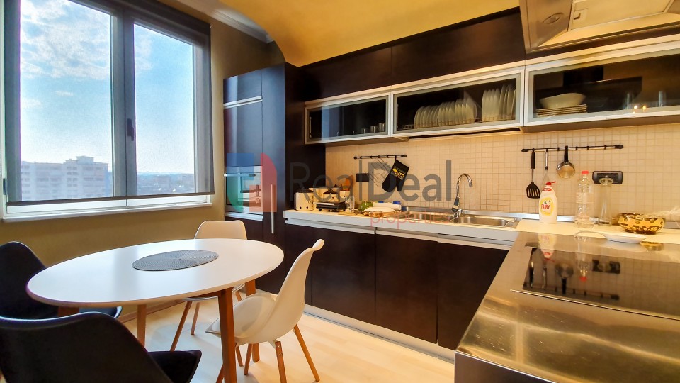 REFMG211058 - Jepet Me Qira Apartament 2+1 luksoz ne Bulevardin Gjergj Fishta. Ndodhet ne katin e tete shume prane Bllokut, me pamje fantastike te qytetit te Tiranes dhe Bulevardit. Nje apartament mjaft elegant i cili organizohet ne nje sallon ndenje me ambient gatimi, dy dhoma gjumi, nje tualet si dhe nje ballkon. Gjithcka eshte pershtatur per tju garantuar nje jetese te qete dhe mjaft komode. Pallati ju ofron standartet me te larta te jeteses, i pajisur me dy ashensor si dhe parkim nentokesor, ne te cilin ndodhet edhe vendi i parkimit per apartamentin. Mos e humbisni kete mundesi fantastike. Per me shume informacione ose nje vizite ne prone na kontaktoni +355 67 403 2997 !