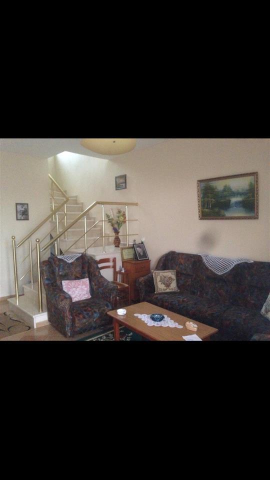 Shitet shtepi 2 kateshe. Ndertim i ri, me siperfaqe trualli 200 m2, me siperfaqe ndertimi: kati i pare 74 m2 i perbere prej 2 dhoma, sallon dhe banjo, ndersa kati i dyte 84 m2 i perbere nga 3 dhoma, ballkon dhe banjo. Gjithsej 158 m2. Oborri eshte me mur rrethues dhe i mjaftueshem per parkim mjeti, peme frutore, etj. Shtepia eshte ne gjendje te shkelqyer,e orientuar nga jugu, me cati bashkekohore dhe disponon certifikate te rregullt pronesie. Shitet per arsye emigrimi. Cmimi nen koston reale 110,000 euro.